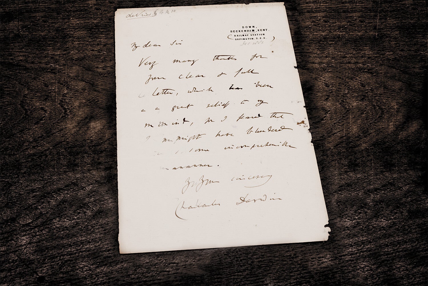 ORIGINELE BRIEF VAN CHARLES DARWIN geschreven aan Artis